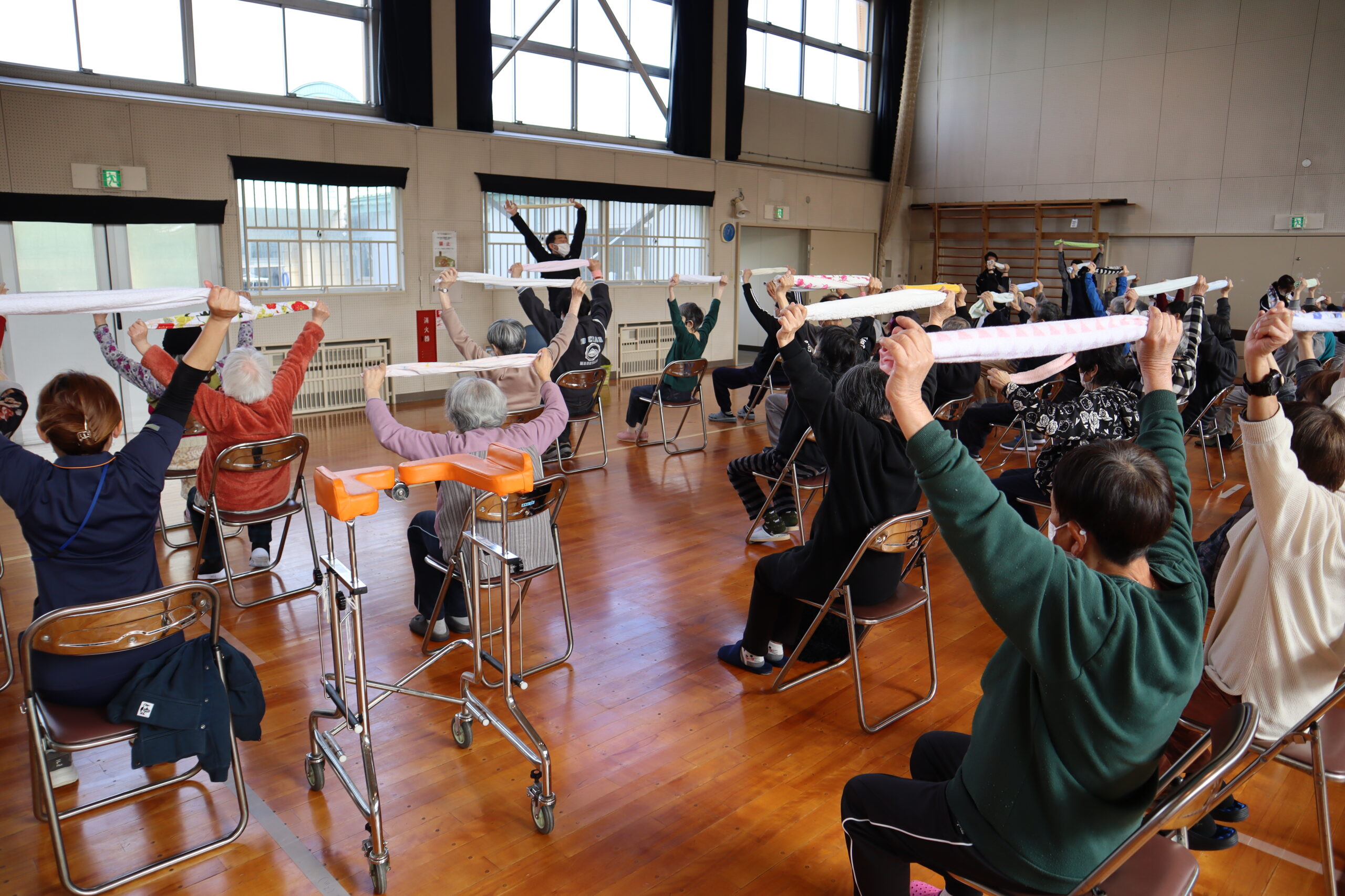 お招きして 、利用者や職員に様々なストレッチ方法を教えて頂きました。